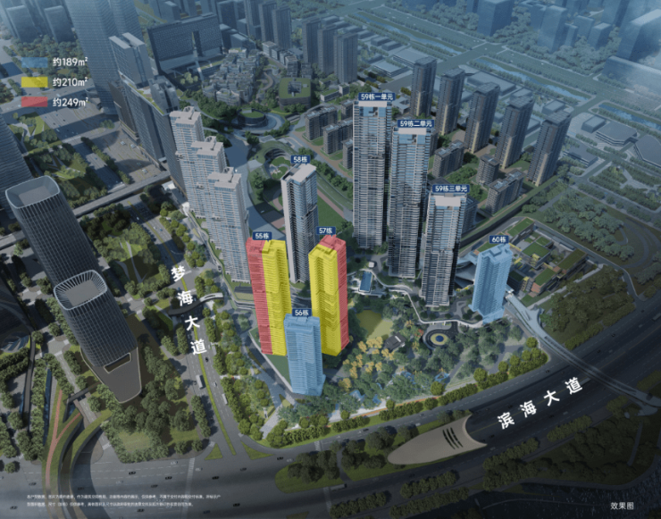 即将入市的深铁前海时代尊府首期将推出270套房源,房源位于55栋、56栋、57栋、60栋。其中,建面约189㎡户型主要在56栋、60栋,建面约210-249㎡户型分布在55栋、57栋。