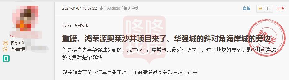 鸿荣源奥莱项目,就是鸿荣源塘尾旧改项目。
