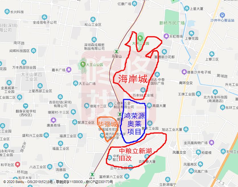 小编特意画了一张大致位置图,供网友参考,加上之前没有提及的中粮立新湖旧改,沙井邻近11号线地铁附近,特别是马安山到塘尾地铁站东侧这一片,将迎来巨变,而且从海岸城到鸿荣源奥莱项目的商业来看,也是走高端路线。