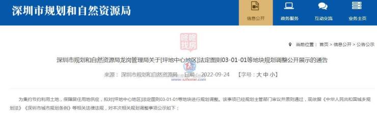 近日,深圳市规划和自然资源局龙岗管理局发布《关于[坪地中心地区]法定图则03-01-01等地块规划调整公开展示的通告》(以下简称通告)。