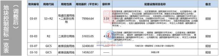调整后包括03-01、03-03、03-07、03-10等4个地块,其中,