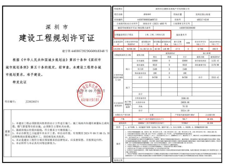 盛境御府位于龙岗区园山街道,项目建设用地面积18206.65平方米,用地性质为二类居住用地+商业用地,新建建筑2栋,建设规定总建筑面积为97660平方米。规划618套住宅(其中保障性住房150户)。
