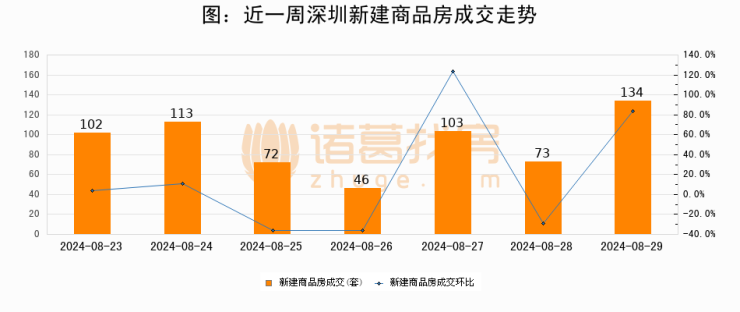 【深圳成交日报】08月29日新房成交134套、二手房186套;涨价房源28套
