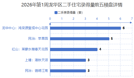 本周龙华区龙华中心片区的鸿荣源壹成中心花园以6套录得量居榜首。具体如下: