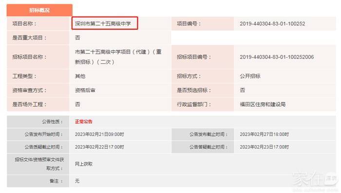 近日,深圳市第二十五高级中学(明德集团实验学校高级中学)项目(代建)重新招标。