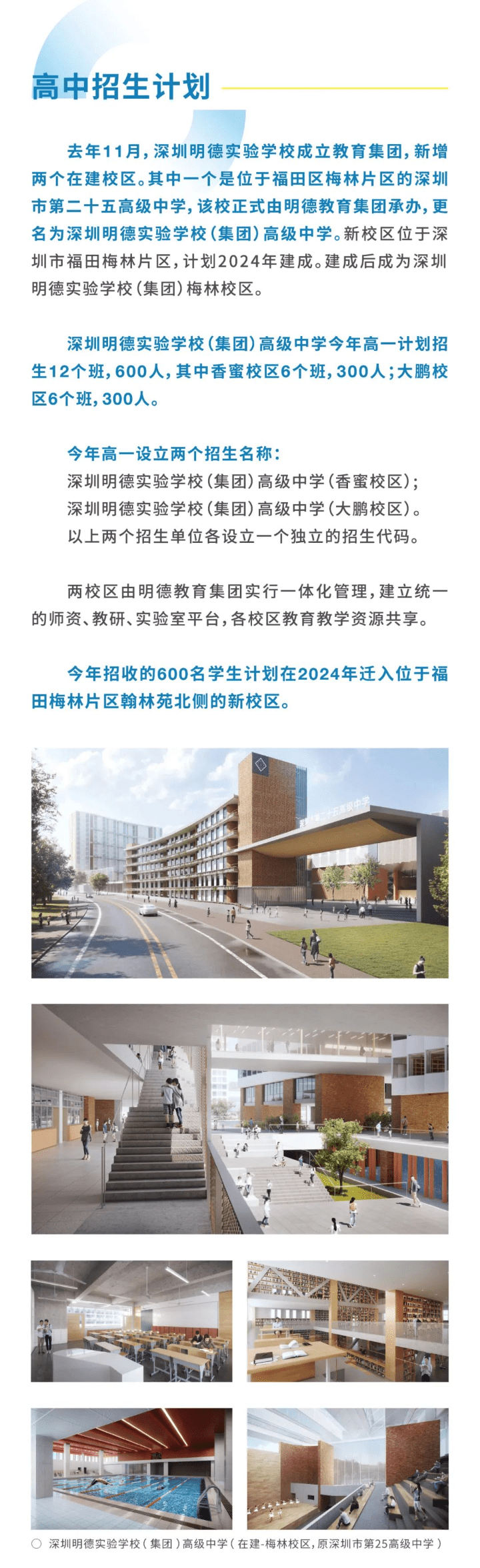 从2022年明德的招生简章显示,2021年11月份,深圳明德实验学校成立教育集团,新增两个在建校区,其中一个就是深圳市第二十五高级中学,学校计划2024年建成,可提供学位1800个。