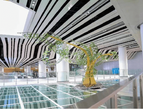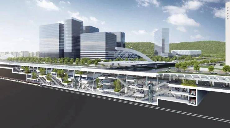 黄木岗枢纽在拆除原有立交桥基础上,采用“隧-站-桥”一体化创新设计,释放了地上空间,大规模引入天窗、中庭、绿植,彻底改善城市区域功能割裂、缺乏慢行系统、景观效果差等问题,形成较为自然舒适的综合地下空间,提高社区生活便利度,引领区域快速发展。