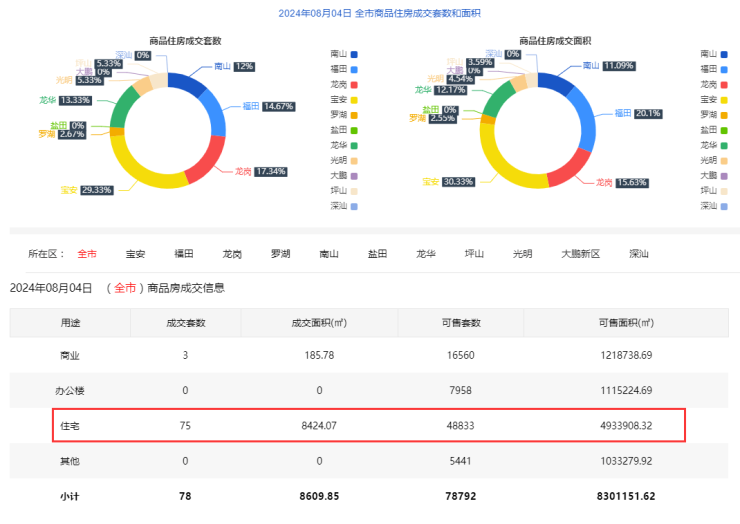 8月4日深圳新房住宅成交75套 二手房住宅成交23套