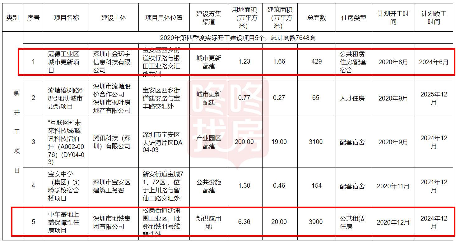 宝安区近日发布《宝安区2020年安居工程第四季度开工、建设筹集项目表》。