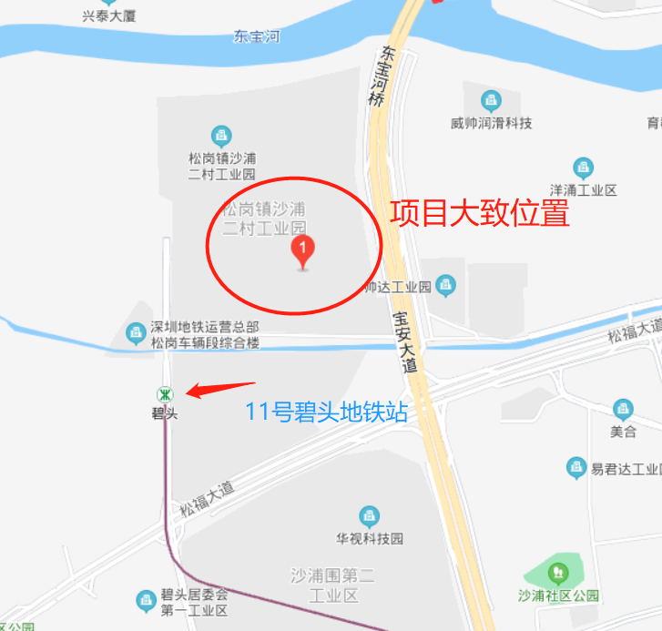项目位置:松岗街道沙浦围工业区,毗邻地铁11号线碧头站