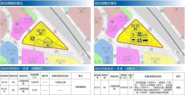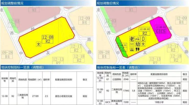 在本次土地整备规划的审批范围内,对留用土地地块4《深圳市龙岗202-09号片区[龙西五联地区]法定图则》12-08-02地块周边规划进行优化,其中12-08-01地块,用地面积为2046平方米,规划用地性质为公共绿地;12-08-03地块,用地面积为7200㎡,规划用地性质为教育设施用地,配套设施项目18班小学。