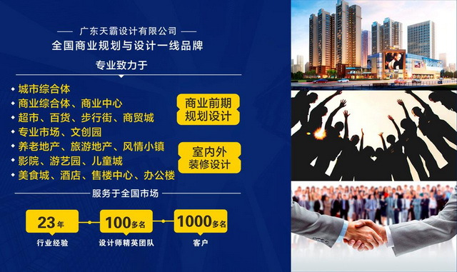 One Avenue卓悦中心在室内外装修设计、商业规划设计方面凸显差异化,以“艺术城市”设计理念实现全新场景式设计商业街区,带来全新商业体验,还未开业就备受期待!天霸设计在商业街区打造、城市综合体设计方面有着独到的设计见解、及丰富的实战经验;要想打造如One Avenue卓悦中心一样还未开业就以闻名于市的商业项目,可以找天霸设计为您定制商业前期规划设计及室内外装修设计方案。