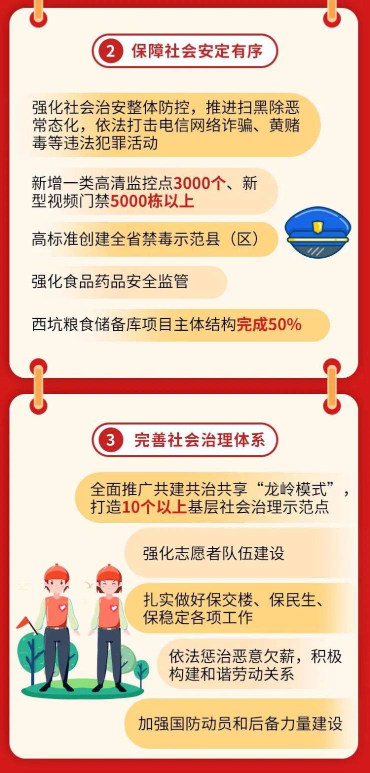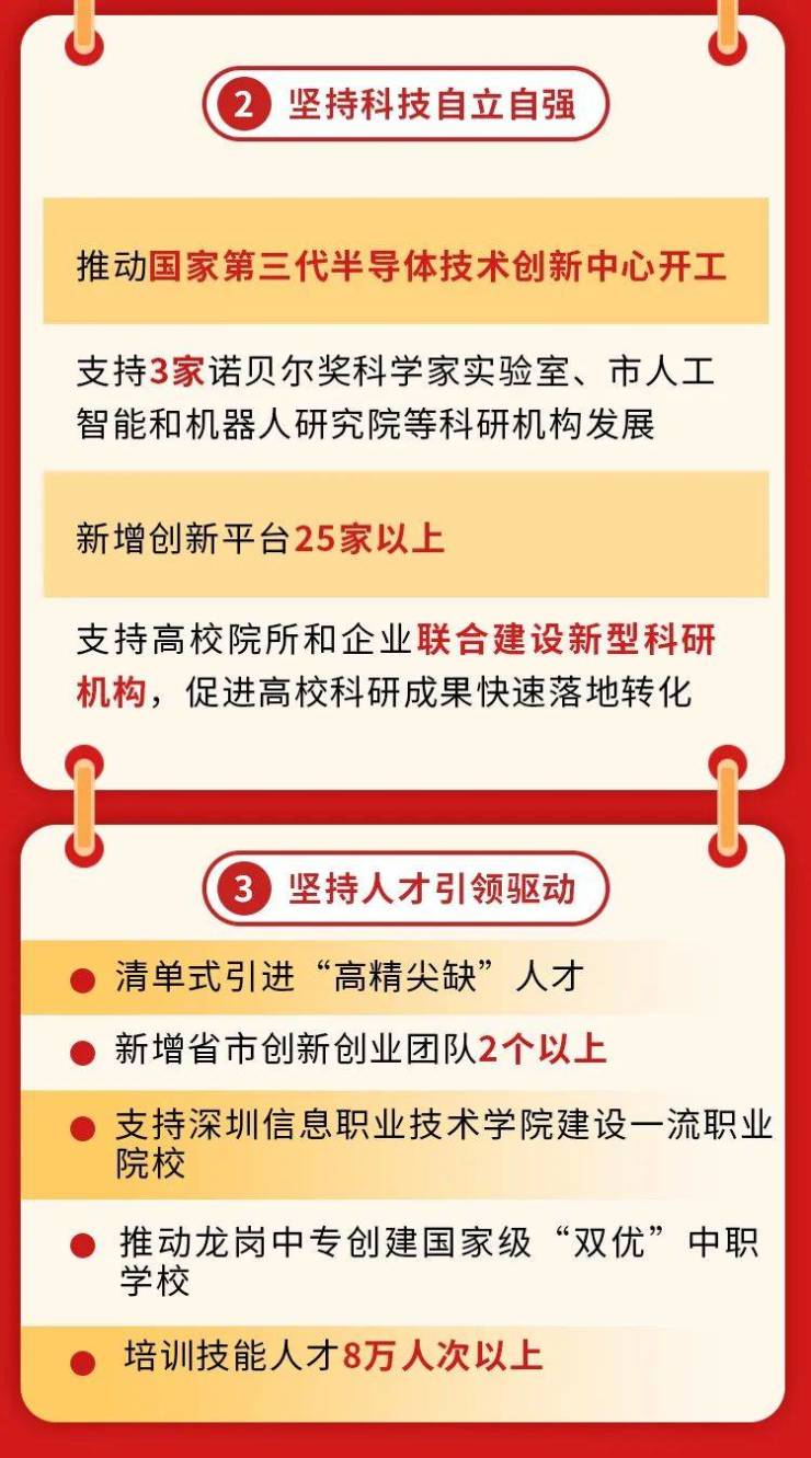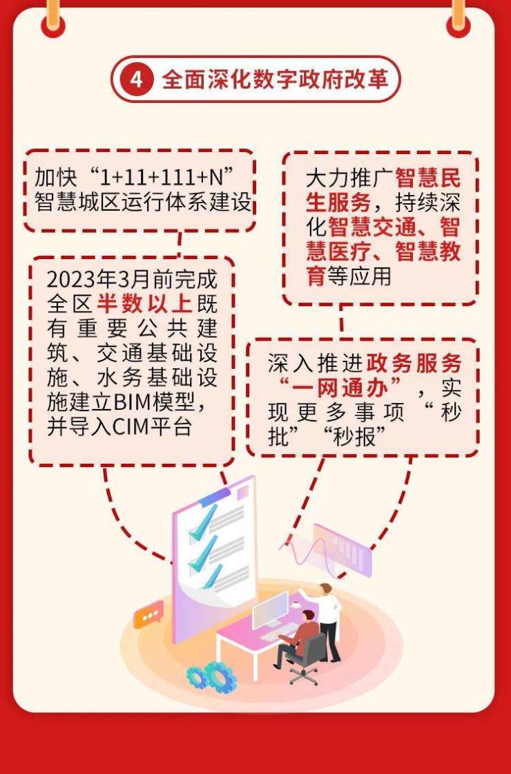 教育:完成12所义务教育学校项目主体建设,新增公办学位超2万座,加强10所卓越学校培育,组建中小学教育集团2个以上。