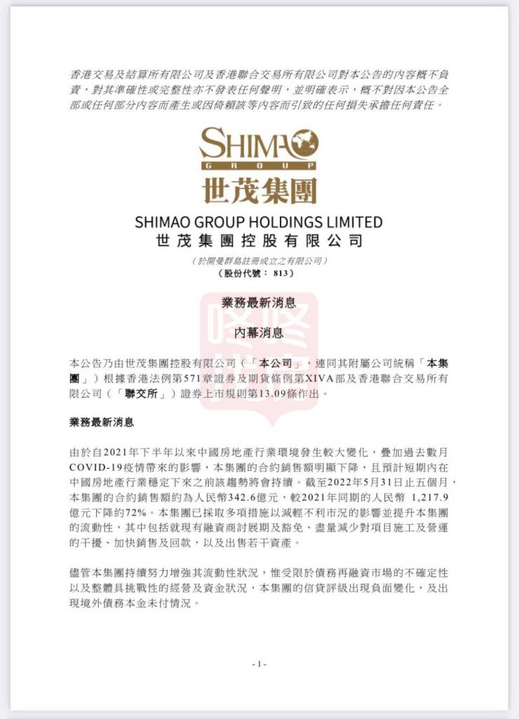10亿美元债到期未付,世茂发布公告!前5月销售额下降7成