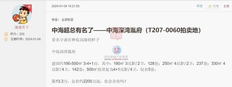 深圳湾超总纯大户新盘,取名“中海深湾胤府”!限售13.33万/平