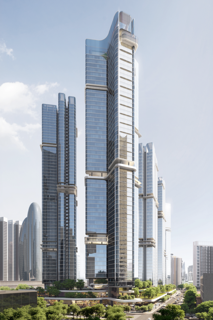 项目总占地面积约9.2万m²,计容建筑面积27.7万m²,涵盖超高层国际公寓、特色企业办公总部、高端商业等多元化业态的高规格商业标杆综合体。
