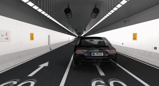 隧道分上下两层车道,双层单向两车道加连续紧急停车带,设计时速为60km,为小客车专用通道。