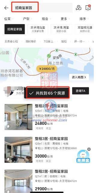蛇口招商玺家园目前有65套房在挂租,124-127平租金约23000—30000元/月不等。