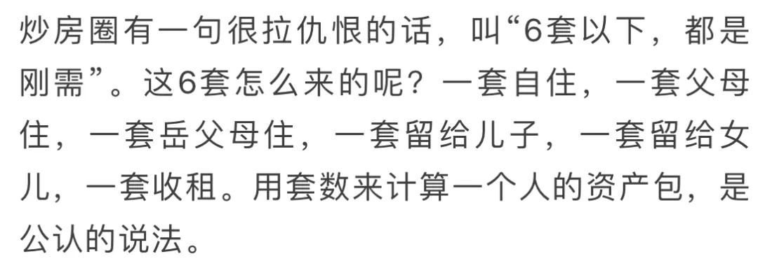 叔觉得六套可能有点夸张了,但是要求双方老人各有一套房,整个家庭能有一套备用的房子,其实并不太过分。这些房产在顺遂的日子里不过能让人活得轻松些,但意外发生的时候就是可以倚仗的资本。这么一想,叔突然觉得没那么愧疚了。毕竟叔还是有底气能让父母养老没有后顾之忧的。