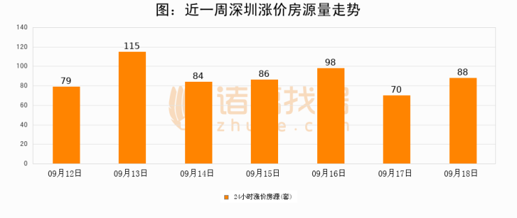 根据诸葛找房数据显示,深圳24小时涨价房源量为88套,较09月17日增加18套,环比上涨25.7%。与此同时,涨价房源占比小幅扩大,业主信心有所提升。