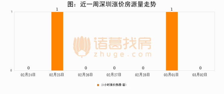 根据诸葛找房数据显示,深圳24小时涨价房源量为0套,较03月01日减少1套,环比下降100%。与此同时,涨价房源占比小幅回落,对于购房者来说是一个入市窗口期,购房者可抓住时机入市。