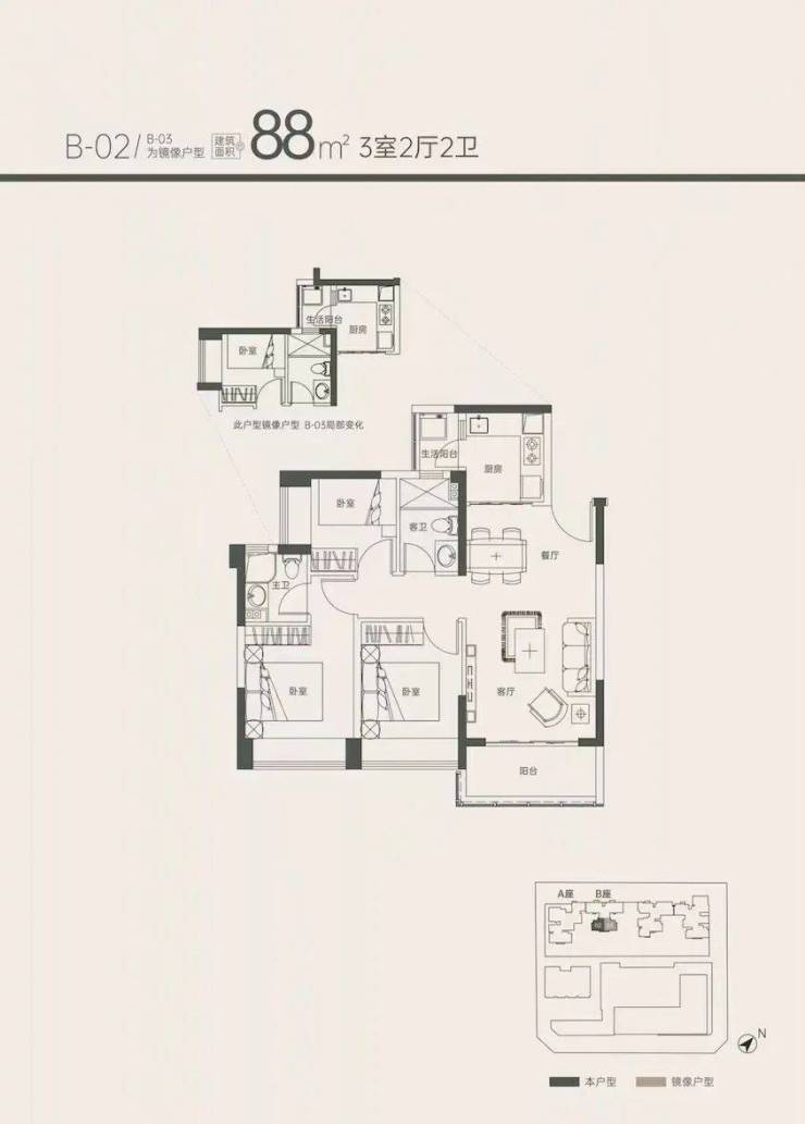87-88㎡ 3房2厅2卫 总价约478-570万