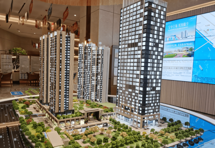 目前已经开放4个异地展示空间,每个面积段都可看,实体样板间预计9月份开放。