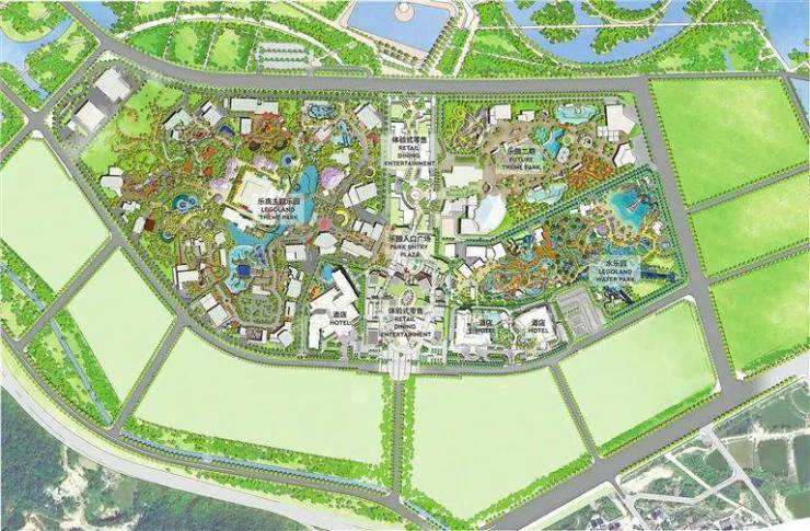 深圳乐高乐园度假区位于深圳大鹏新区,占地面积约为58万平方米,规划建设1个乐高乐园主题乐园、1个乐高乐园水上乐园和3家主题酒店,还将拥有超过1000个座位的全球最大乐高乐园剧场,为中国家庭全新设计原创剧场表演。