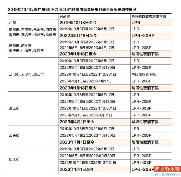 9月1日下午,广东市场利率定价自律机制公布2019年10月以来广东省(不含深圳)内各城市首套房贷利率下限历史调整情况,其中,2019年10月8日至今,广州执行的首套房利率下限为LPR(贷款市场报价利率)。