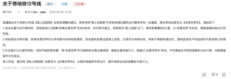 二是地标效应与辨识度。“前海冰雪世界是深圳新兴的地标性建筑,知名度和热度远超海上田园。”该市民认为,以“冰雪世界东”作为地铁站名,有助于乘客快速定位,有效避免因地名不符而导致找不到地铁口的困扰。