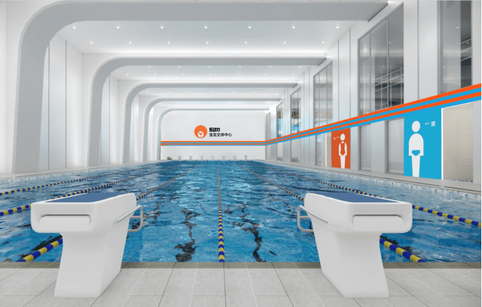 游泳馆内含一个50米标准泳池,全天候水循环温控设备实现四季恒温。