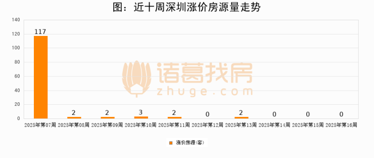 从调价房源来看,第16周深圳涨价房源0套,较上周持平。与此同时,16周涨价房源占比持平