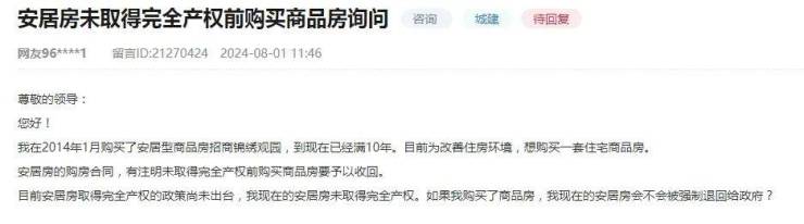 近日,领导留言板有深圳安居房业主提出了这样的疑问。
