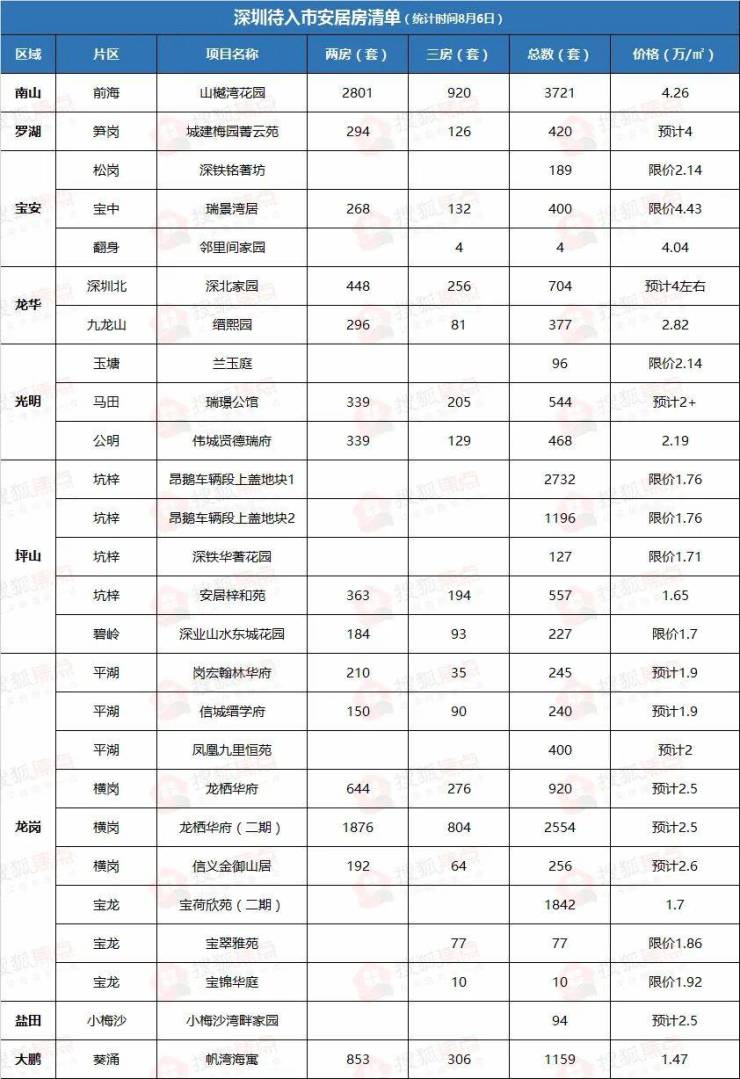 据媒体统计,深圳2012-2014年之间配售了9个安居房项目,共供应1.5万套房源。