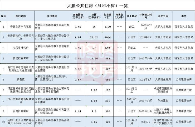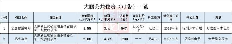 截止目前,统计到的大鹏区公共住房项目共有12个,包括: