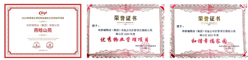 基于“云赏”服务体系,燕晗山苑项目以线下“服务体验官”与线上“2分钟响应机制”为双轮驱动,实现了业主满意度、收缴率、历史欠费回收率“三个100%”佳绩,荣获克而瑞物管联合中物研协颁发的“2024粤港澳大湾区物业服“节水型居民小区”“和谐幸福家园”等多项殊荣。