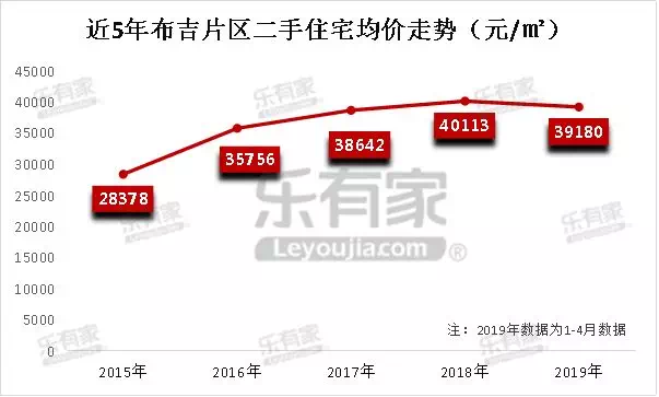 丰富的教育资源、多个大型商圈、多条地铁线等等利好因素让布吉片区二手住宅均价在近5年来快速上涨,据乐有家研究中心数据显示,布吉片区二手住宅均价从2015年的28378元/㎡上涨到2019年的39180元/㎡,涨幅达到38%。