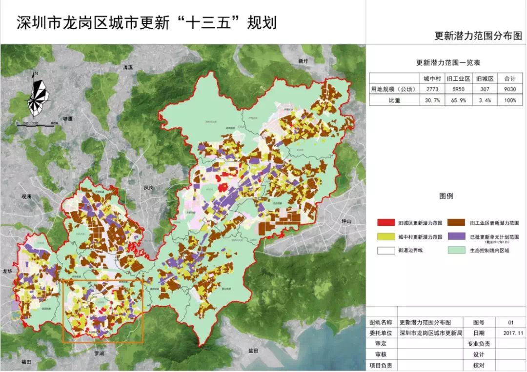 龙岗城市更新“十三五规划”布吉街道更新潜力范围图