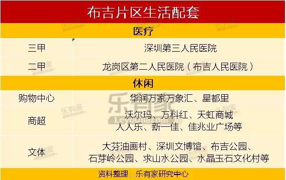 医疗:布吉是深圳发展较早的片区,生活配套都比较齐全、成熟。医疗方面有龙岗区第二人民医院、深圳第三人民医院以及多家社康中心,其中深圳第三人民医院是是由深圳市政府创办的一所大型现代化“强专科,大综合”的市属三级甲等传染病专科医院,2018年医院获广东省高水平医院,并获得国家结核病临床医学研究中心(深圳少有)。