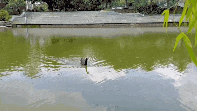 看着远处悠闲的天鹅