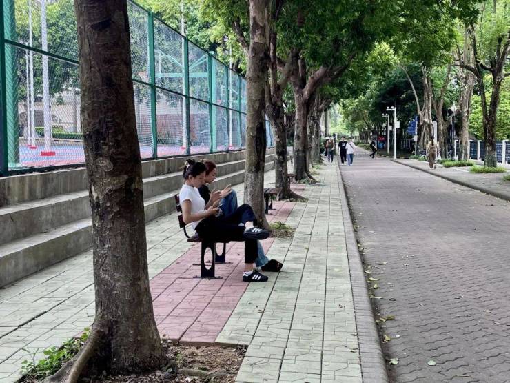 享受着校园这道亮丽的绿色风景线