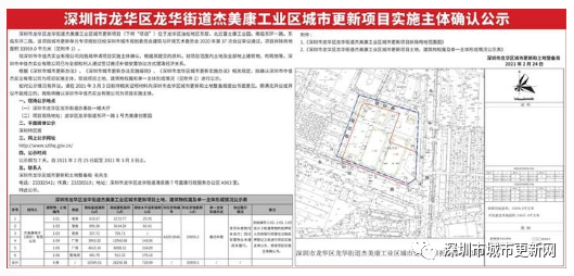 2月25日,龙华区更新整备局发布关于龙华街道杰美康工业区城市更新项目实施主体确认公示,由中南集团操盘。