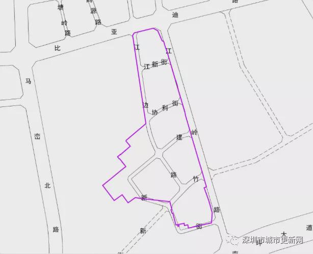 江岭竹元片区更新项目位于马峦街道江岭社区,比亚迪路与江岭路交汇处西南侧,拟拆除范围用地面积202711㎡,拟更新方向为居住、商业等功能。