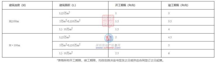 通知根据项目用地性质、建筑高度和建筑规模的不同,对建设用地的开工、竣工期限作了不同的规定。