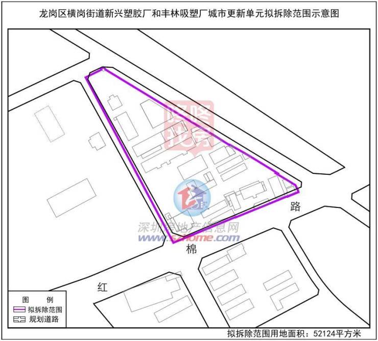 龙岗区横岗街道新兴塑胶厂和丰林吸塑厂城市更新单元位于龙岗区横岗街道,红棉路与埔厦路交汇处东北侧。