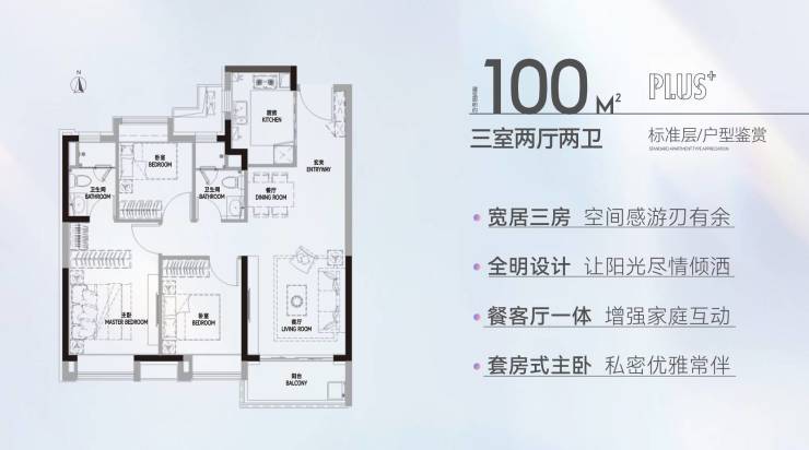 为关照日常居住体验,龙光天曜PLUS+新品在户型的打造上,从光照、尺度、私密、洁净、收纳、体验等维度精心考量,以6大空间改善系统,敬呈精致生活体验。方正空间利用率高,餐客通透、厨卫全明,动静分区互不干扰,干湿分离卫浴、独立玄关、全卧室带飘窗等细节设计也面面俱到。
