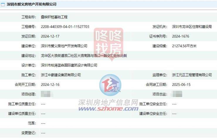 近日,龙华区大浪街道浪口村改造城市更新单元启动桩基础工程,并从施工许可资料显示,项目已经更名为“爱义叠映轩”!