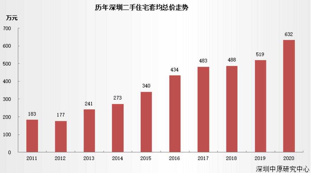 而且,从2019年开始,深圳本外币存款余额增速开始明显提升,不仅首次探到20%以上,并超过了上海,而这一时期,也是深圳房价首次突破6万元,并在随后的一年之内,上升到7-8万元的阶段。套均成交总价,一年之内涨了100多万,这是过去多年从未有过的大涨。除了加杠杆以外,我反复看了居民收入数据,实在找不到房价这么上涨的理由。
