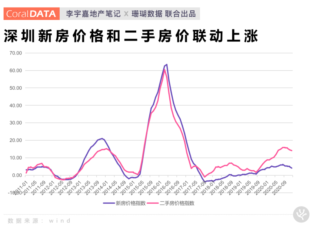 50万的贷款,一个月的月供也就2000多块钱,这点钱大家还是拿得起的。所以一有了贷款,你就会对房价涨幅的敏感性降低,房价的上涨就会很顺畅。这就是过去深圳房价能够任性上涨的主要原因。较大程度加杠杆,将月供压力摊薄,并通过房价上涨,一次性覆盖掉。