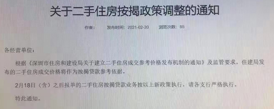 过去几年的调控,不缺政策,缺的是执行,各部门密切配合,一以贯之地执行。强烈建议,深圳银保监、金融办,发一个文,从风控的角度,从打击资金违规流入楼市的高度,从金融审慎管理的维度,从金融监管落实“一城一策”的站位,要求辖区内的银行,严格执行二手房指导价。